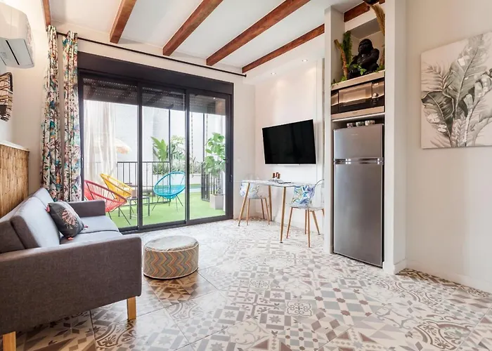 Das Apartment Loft Ruzafa Plus Valencia ist im Viertel Eixample, 5 Minuten Fußweg vom Parque Central entfernt. Auf einer Terrasse dieses 6-Zimmer-Apartments können die Gäste entspannen und einen Ausblick auf den Garten genießen.