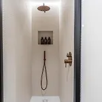 A seating area, equipped with amenities like an air conditioner, ensure a comfortable stay. For added convenience, a walk-in shower and a separate toilet are available at this apartment. Hairdryers and bath sheets are also included in the bathroom.