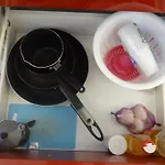 Geniet van het comfort van een badkamer in dit appartement, dat met een droger is uitgerust.