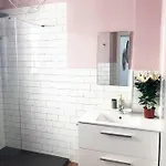Soffa, klädloge och mathörna ingår i varje rum. Badrummen har hårtork, dusch och handdukar.